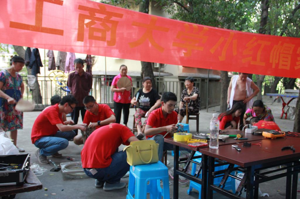 小红帽家电维修协会的成员们在三角道社区居民楼下设点为义务维修家用电器。他们的奉献精神以及一丝不苟的品质得到了村民们的一致好评。期间,又出现了每一年三下乡都特别动人的场景,老人们看到志愿者额头的大汗主动地用扇子为他们扇风。在这个高速进步的时代,计信学子们脚踏实地,勤勤恳恳,发挥专业优势,服务奉献社会。