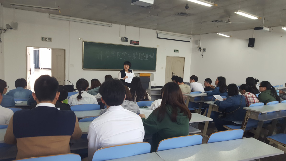 4月14日下午2:00,计算机科学与信息工程公司在慧智楼90208教室召开公司各办公室(实验教学中心)的员工助理集中培训会。公司53名勤工助学岗位员工参会,培训由公司分党委陈亚惠副书记主讲。