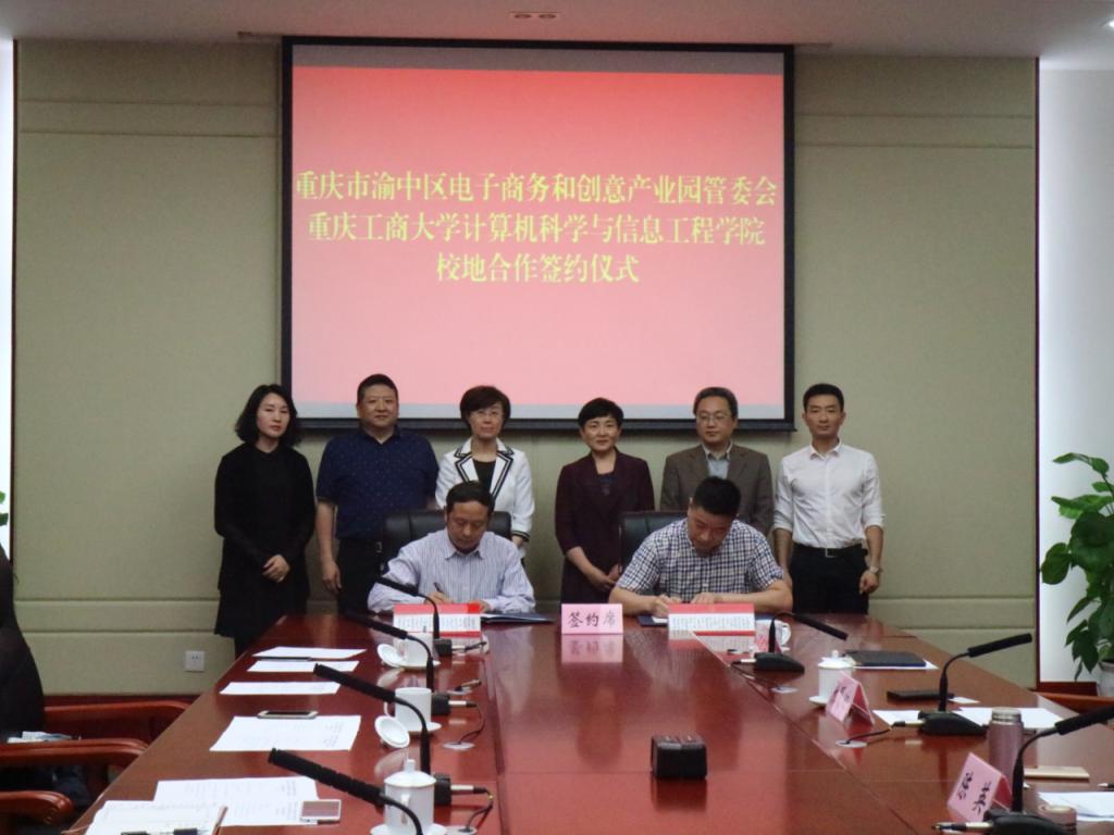渝中区电子商务和创意产业园是以电子商务、互联网和信息技术、创意设计等特色产业为主的新兴产业集聚区,先后被授予“国家电子商务示范基地”、“国家科技企业孵化器”、“重庆跨境贸易电子商务示范区”、“重庆市创意产业基地”等称号。目前已集聚企业2500余家,规模以上企业378家,对科技人才尤其是计算机、电子商务、营销、文化创意、艺术设计类等相关专业的人才需求量大。签约仪式上,双方负责人表示,双方将在人才培养、技术创新、项目合作等领域实现资源共享、优势互补,在毕业生见习、实习、就业,互派挂职兼职、深化产学研合作等方面展开深度合作,使公司的人才优势、智力优势和功能区的产业优势有机结合,确保合作项目落到实处,取得实效。