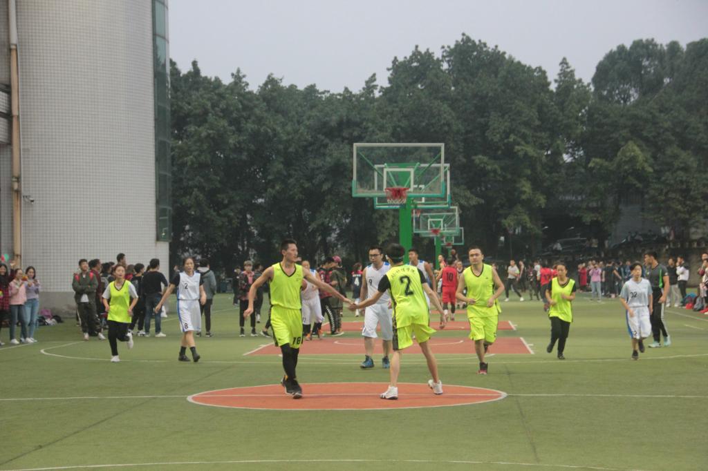 比赛中,无数次无缝连接的传球与接球,多次强有力的快速进攻,一个健步、一个稳健的转身,划出一道道完美的弧线。场下,计信公司的啦啦队为场上的选手们呐喊助威。场上的局势一直都很紧张,上半场计信公司以26:24微弱优势领先。体育公司在中场带来精彩的啦啦队表演,为场上的选手们加油助威。下半场,双方选手都不甘示弱,中途甚至两次出现比分持平状态。夜幕降临,可场上选手们的激情毫不减退,结束的哨声响起。最终,计信公司以42:40的比分战胜了会计公司,获得本场比赛的胜利。