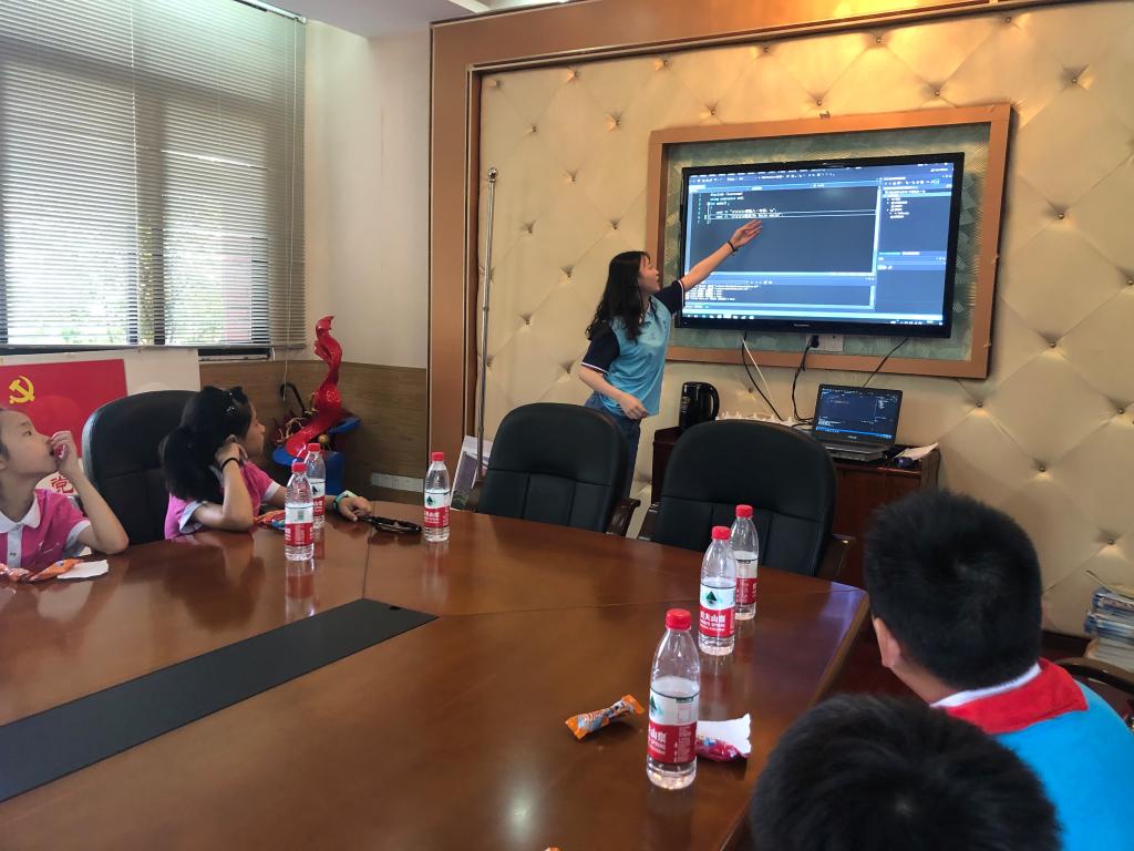 8月11日,“AI智囊团”走进梁平区实验小学与援鄂医疗队医护人员的子女和留守儿童进行了结对子帮扶活动。实验小学副董事长刘传权、区教委基教科王娜和校德育处主任岳良敏亲切的接待了实践团,并详细介绍了8名员工的具体情况。实践团首先通过“名字记忆破冰游戏”营造了现场轻松欢乐的氛围,接下来队员们利用所学知识对小朋友们进行了简单的PS、C++基础和Python技能的培训。队员们通过通俗易懂的语言和演示给小朋友们展示了计算机超强的应用功能,并手把手教小朋友实操一些简单的软件,以此激发小朋友们对科技的兴趣和对智能技术的好奇心。几轮小课堂之后,小朋友们与实践团队员建立起了相互信任和默契,结队成功。接下来,实践团成员将通过“线上辅导”的形式,对结队的小朋友进行课业辅导和计算机编程培训。实践队队长何颖说:“我们希望此行给小朋友的心里播下一颗种子,让感知科技、拥抱科技、掌握科技在他们身上生根发芽。”