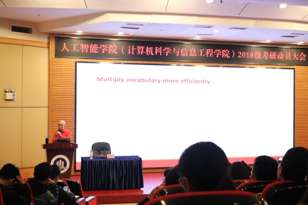 陈辉荣老师用幽默风趣的语言跟同学们分享了“考研那些事儿”,从是否考研、考研难度、考研英语与四六级的区别、是否需要报班以及何时开始准备五个方面向同学们介绍了考研英语注意事项,呼吁同学们以积极认真的态度学习考研英语。接下来陈老师将考前的时间分成词汇、语法和阅读、写作,应试技巧两大阶段,通过详细的例子,向同学们分析常犯的错误,介绍了更好的英语学习方法。同学们收获满满。