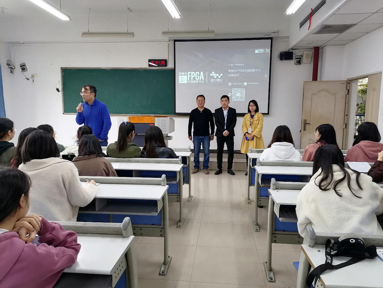 为提高本届毕业生毕业设计水平和促进员工优质就业,把好老员工本科教育最后一道教学质量关,2020年11月3日下午,suncitygroup太阳集团电子信息工程专业毕业设计指导老师与英特尔FPGA中国创新中心相关技术人员对电子信息工程专业毕业生进行了毕业设计与就业现场宣讲。系主任陆胜、副主任晏力、谭荆等指导老师和70余名本专业大四员工参加了本次宣讲会。