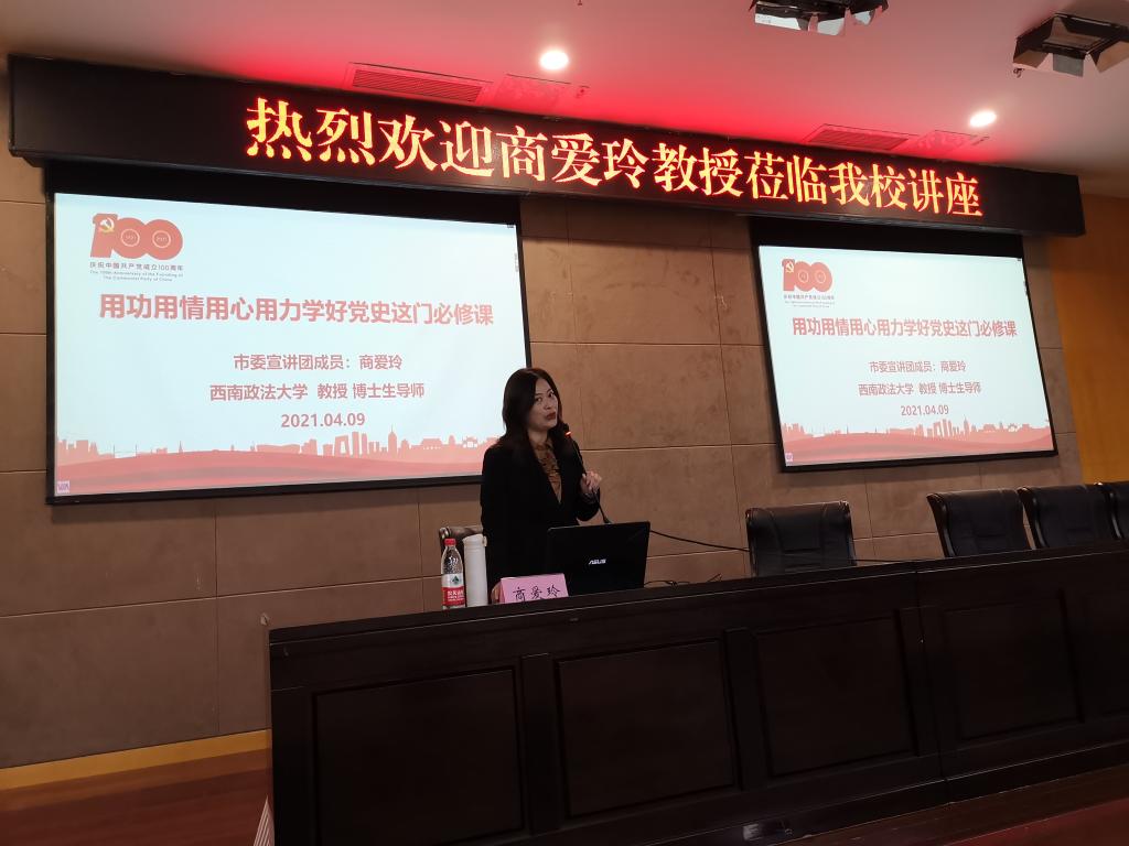2021年是中国共产党成立100周年,百年征程波澜壮阔,以史鉴今砥砺前行!为深入学习贯彻习近平总书记在党史学习教育动员大会上的重要讲话精神,扎实开展党史学习教育,引导广大党员学史明理、学史增信、学史崇德、学史力行,迈进新征程、奋进新时代。suncitygroup太阳集团(计信公司)特邀重庆市委宣讲团成员、西南政法大学教授、博士生导师商爱玲作题为“用功用情 用心用力 学好党史这门必修课”党史学习教育专题党课讲座。公司党政领导班子、全体党员,以及发展对象、积极分子代表等150余人聆听讲座。公司党委书记何希平教授主持讲座。