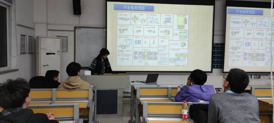 随后,王翔同学介绍了单片机的内部结构组成、单片机开发板各模块原理图以及寒假自学单片机的心得体会和收获感想。