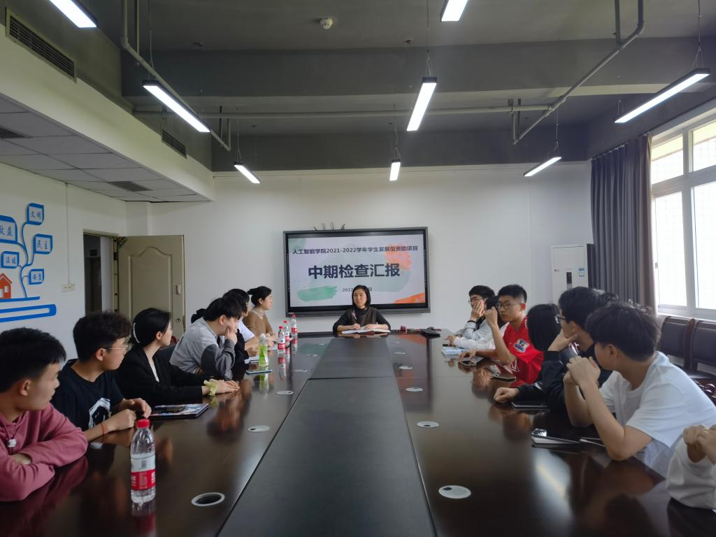 本次中期检查汇报以PPT讲演的形式进行,21个项目的负责人围绕项目研究背景、项目特点、研究内容、已完成工作及后续工作计划等内容,展示了项目实施情况。《基于复杂神经网络的航空企业付费选座算法设计》、《提供信息加密的AI多功能二维码生成器》、《智能保险理赔系统》等智能算法类的项目已大部分完成了模型的搭建、数据预处理及基础功能的检验;《基于STC8的智能运输矿车》、《基于图像识别的分拣机械臂》等硬件开发类已大部分完成原理设计、模块搭建,进入测试环节。通过项目汇报、展示,各项目小组也在观摩中相互学习、交流经验。