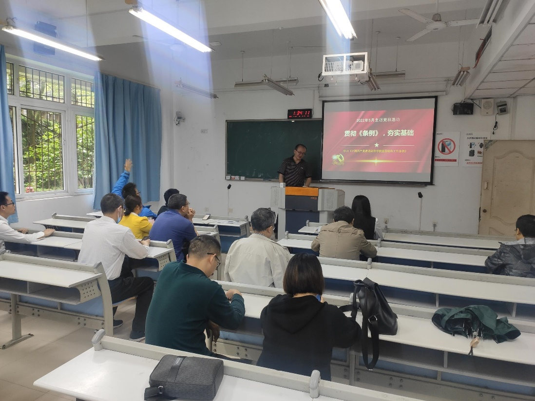 第二阶段为面向全体支部党员的主题党日活动。本月主题党日活动的主题为“贯彻《条例》,夯实基础——学习《中国共产党普通高等公司基层组织工作条例》”(以下简称《条例》)。李明从《条例》的概况、《条例》修订的主要内容、《条例》修订和颁布的重大意义,以及如何贯彻和落实《条例》四个方面对《条例》进行解读。他强调,加强党对高校的领导,加强和改进高公司党的建设,是办好中国特色社会主义大学的根本保证。《条例》的实施汇聚起为党育人、为国育才的磅礴力量,为坚持和加强党对高校的全面领导为培养社会主义建设者和接班人提供坚强组织保证。