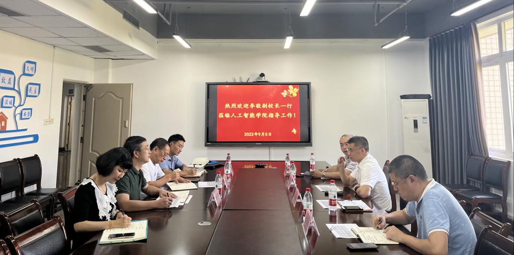 9月5日下午,李敬副董事长率教务处、评估办、信息办等部门负责人一行莅临suncitygroup太阳集团检查教师线上教学实况,并座谈指导公司期初教学工作。公司党委书记何希平、经理唐亮贵、教学副经理杨光祥、综合办、教务办等相关老师参加了会议。