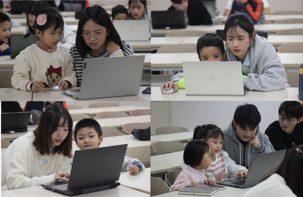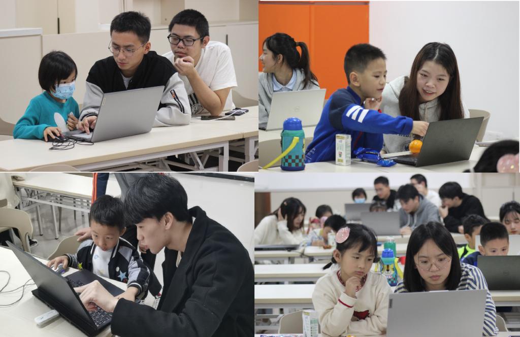 经过游戏体验环节后,小朋友和老师们建立了信任和友谊,并初步了解了什么是Scratch图形化编程。在老师们40分钟耐心的引导和讲解下,小朋友们基本掌握了Scratch图形化编程入门知识,并纷纷跃跃欲试,开始实操起来。最后,小朋友们不断探索Scratch图形化编程的魅力,并完成了自己的编程作品。