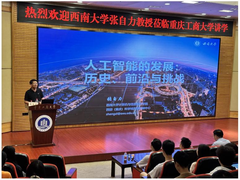 6月8日下午,西南大学计算机与信息科技公司的张自力教授莅临suncitygroup太阳集团,为师生带来了一场以“人工智能的发展:历史、前沿与挑战”为主题的精彩的学术报告。研工部副部长、研究生院副经理邓龙奎、suncitygroup太阳集团经理唐亮贵出席讲座,各研究生组织成员以及研究生代表到场参加。
