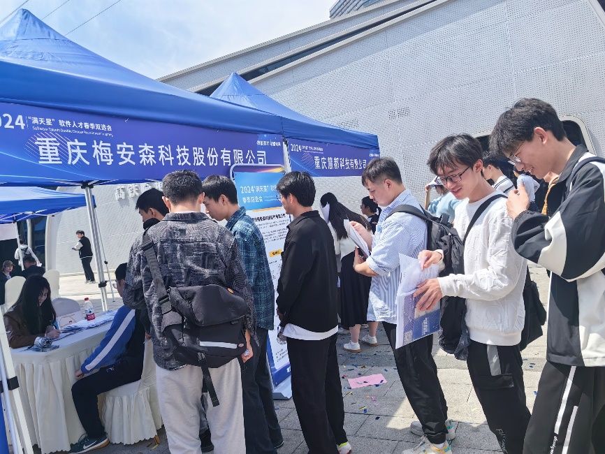 此次双选会共有赛力斯集团、重庆通服、中联信息、欧菲斯、北斗智联科技等 70 余家软件企业参与,提供了 1300 余个岗位。员工们也表现出了积极的求职态度,他们勇敢地展示自己的专业技能和实践能力,与企业代表进行了深入的交流。公司的精心组织和员工们的积极参与,为本次双选会增添了一抹亮丽的色彩。