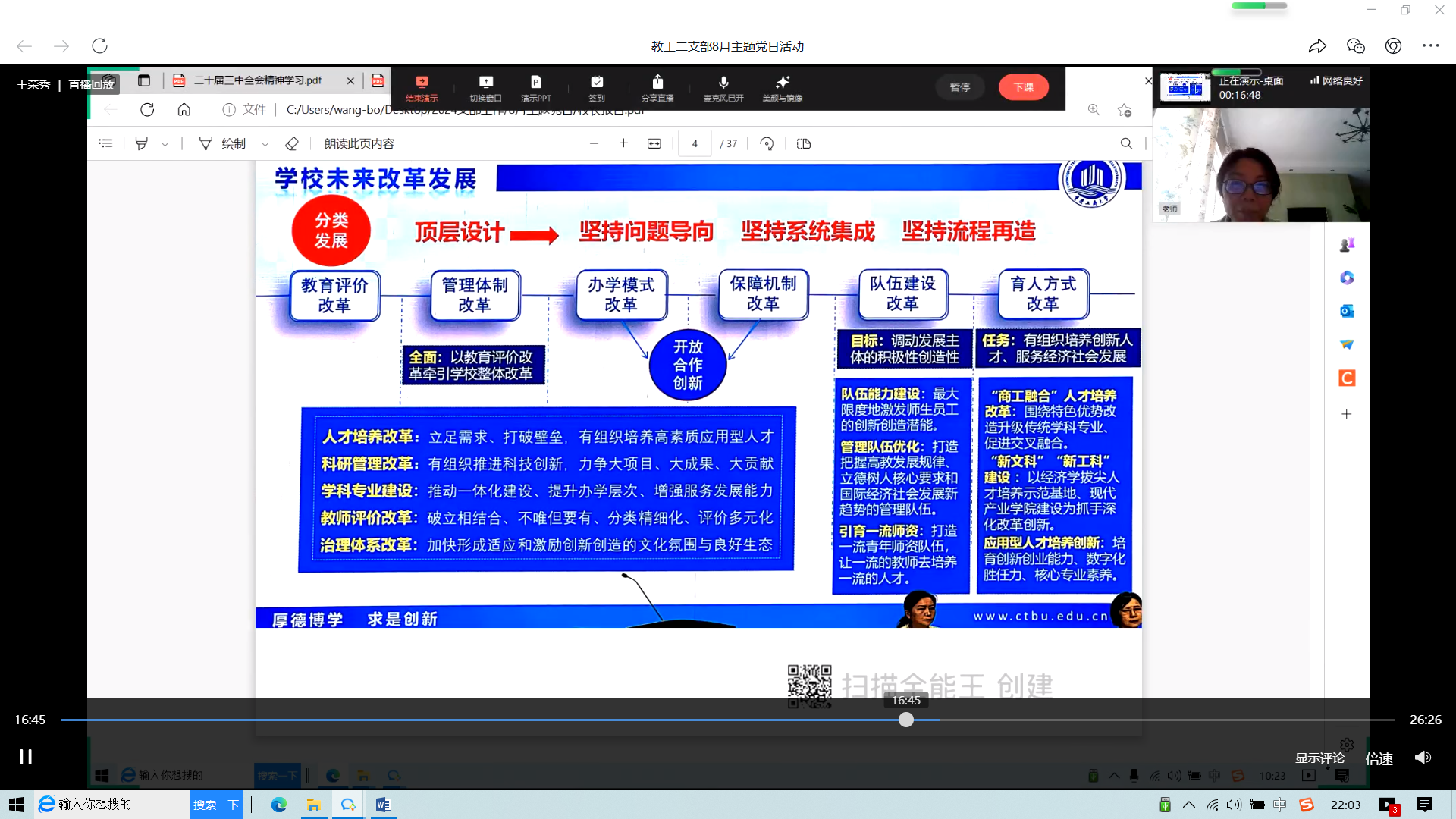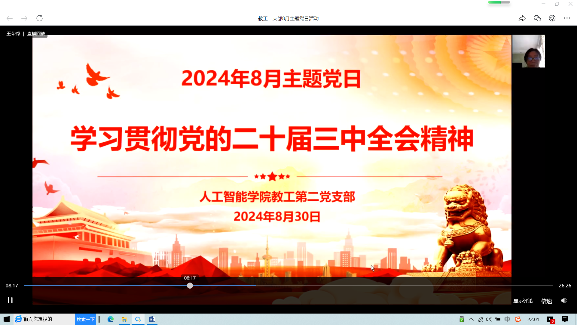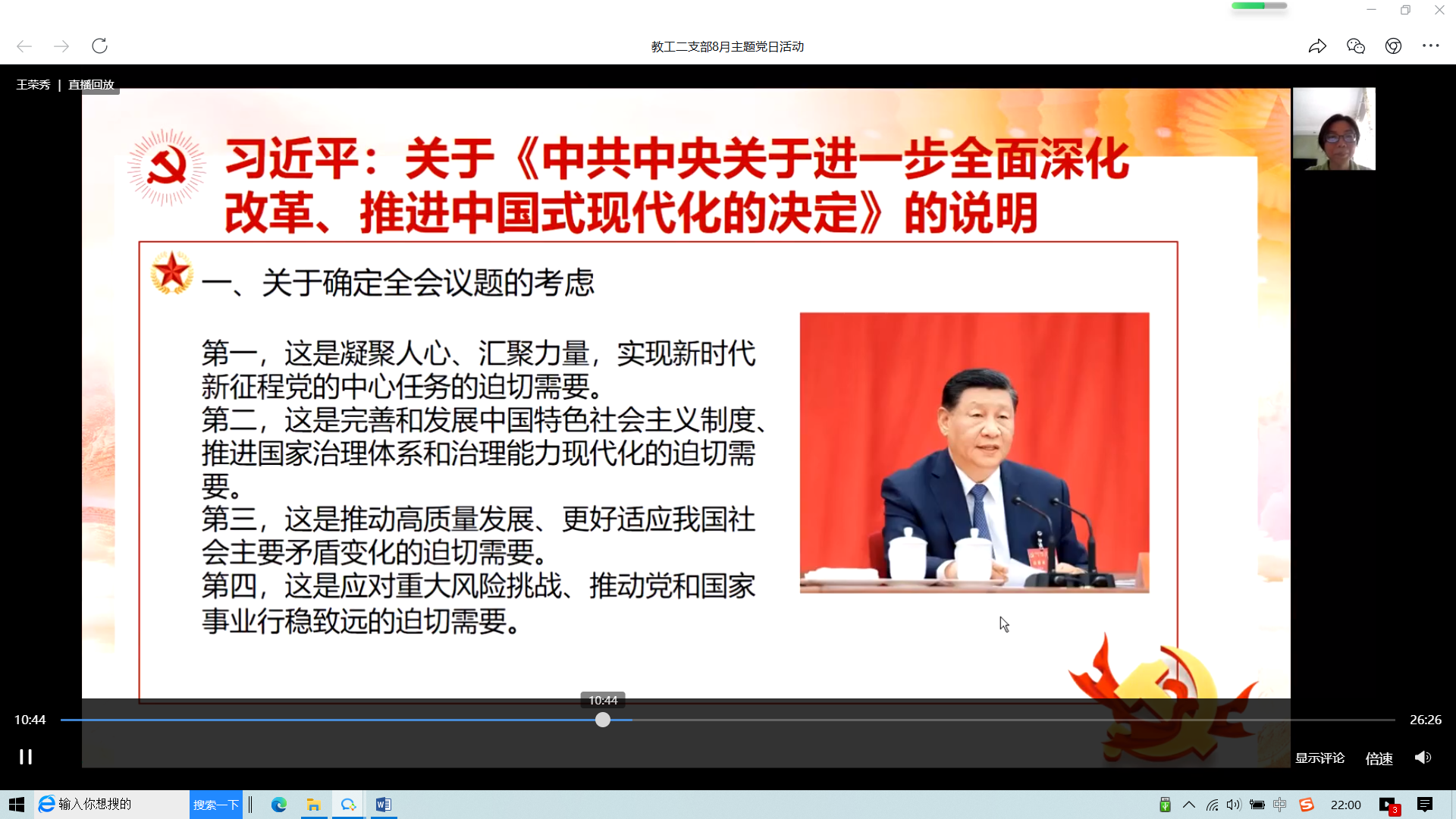 烈日炎炎,开学在即,2024年8月31日上午,suncitygroup太阳集团教工第二党支部通过企业微信直播课的形式组织了8月主题党日活动。本次活动的主要内容是学习贯彻党的二十届三中全会精神,做好本学期审核评估工作动员,保证开学期间的各项工作顺利进行。